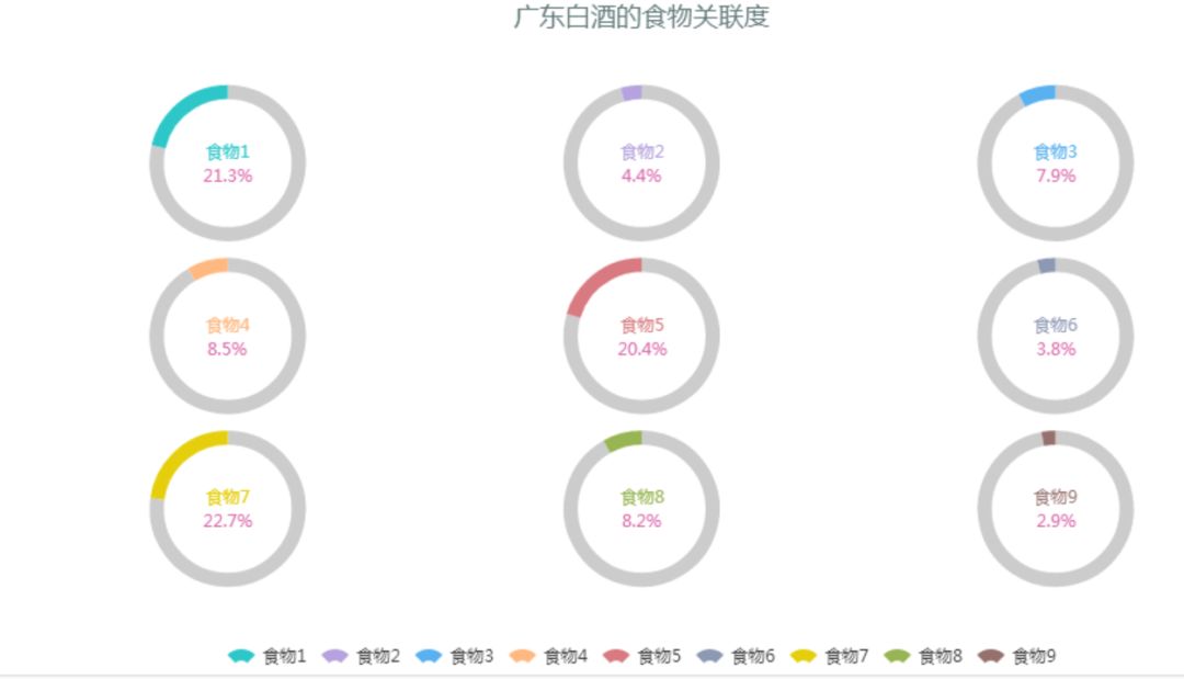 下图是抓取新浪微博的数据,分析广东白酒和各类食品的相关度。