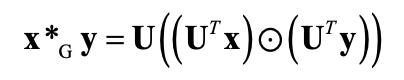 U 是图的拉普拉斯矩阵 L 的特征矩阵,⊙ 表示 hadamard product,对于两个向量,就是进行内积运算;对于维度相同的两个矩阵,就是对应元素的乘积运算。