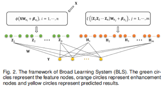 BLS 提供了一种可选的学习结构,通过随机方法将特性扩展到广阔的空间。网络主要由特征节点和增强节点构成。