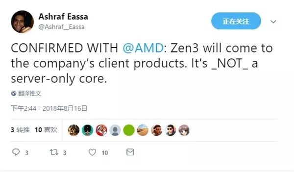 AMD曾多次在公开路线图上提到,2020年在服务器领域会应用Zen 3架构,工艺则标注为7nm+,可能会像现在从14nm优化到12nm那样。对此,Mootley Fool网站专栏作家Ashraf Eassa发推说,已经和AMD确认过了,Zen 3会用于消费级产品,也就是Ryzen锐龙系列,而不是服务器专属。值得一提的是,Zen架构的诞生让AMD全面充返高性能计算领域,甚至在有些地方已经有压制Intel的态势,比如发烧级的ThreadRipper,已经做到32核心64线程。
