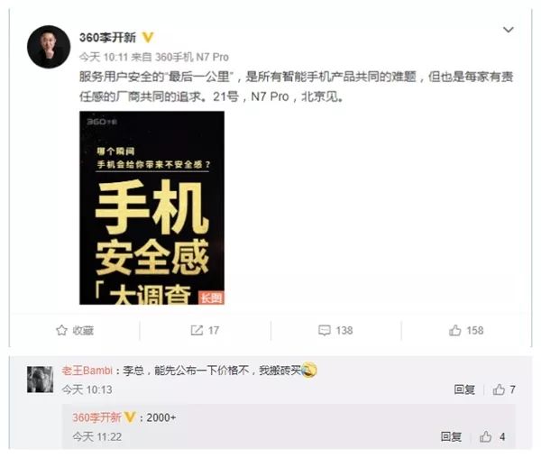 8月17日,360手机总裁李开新发微博称:“服务用户安全的‘最后一公里’,是所有智能手机产品共同的难题,但也是每家有责任感的厂商共同的追求。”