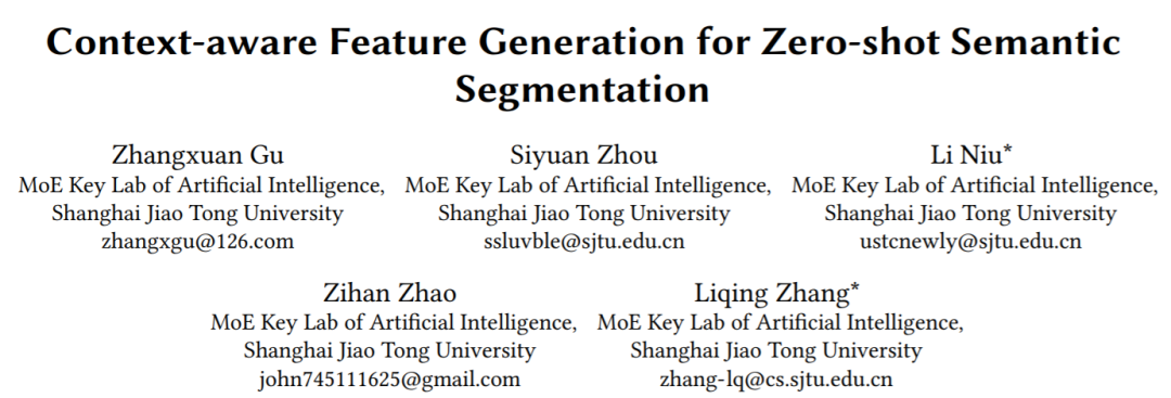 本文介绍的论文是刚被ACM MM 2020接收的一篇零样本语义分割论文《Context-aware Feature Generation for Zero-shot Semantic Segmentation》。