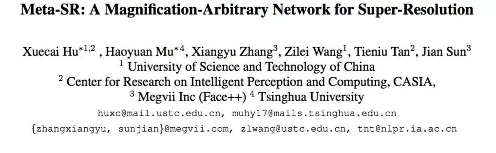 论文名称:Meta-SR: A Magnification-Arbitrary Network for Super-Resolution