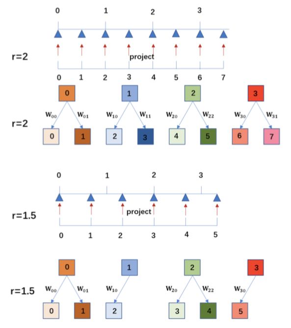 图 2:当非整数缩放因子 r=1.5 时,如何放大特征图的示意图