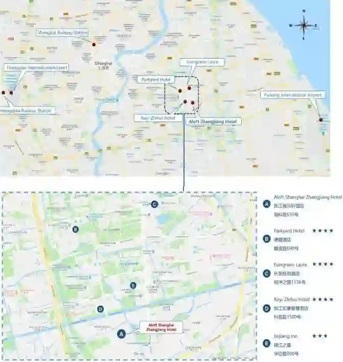 地铁10号线虹桥2号航站楼站(新江湾城方向)至新天地站换乘地铁13号线(张江路方向)至中科路站3号口出,到达会议地点(上海张江海科雅乐轩酒店)