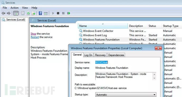 执行之后,恶意软件会在目标系统的system32或SysWoW64目录中存放WpmPrvSE.exe (标记为TROJ_DLOADER.COGBA),然后开启一个名叫WPM Provider Host的服务。下图即为该服务的相关属性: