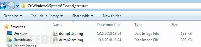 完成上述步骤之后,恶意软件会使用certutil对导出数据进行编码,然后使用WinRAR将导出文件压缩为两个文件(dump1.txt.img和dump2.txt.img),并将它们存放在一个名叫“treasure”的目录中(C:\Windows\System32\send_treasure)。