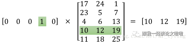 当我们用 向量乘以 时,获取的是 矩阵的某一行,所以 扮演的是一个 。