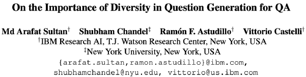 问题生成通过生成一些合成的问题作为训练语料有效提高了问答系统的效果,本文的研究点是:在QG中,生成问题的文本多样性是否对下游的QA有帮助?