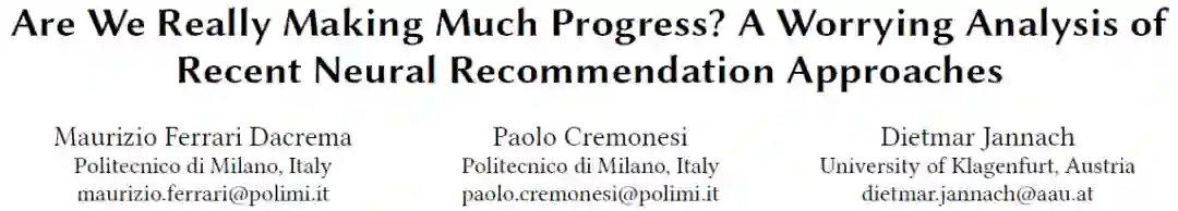题目:Are We Really Making Much Progress? A Worrying Analysis of Recent Neural Recommendation Approaches