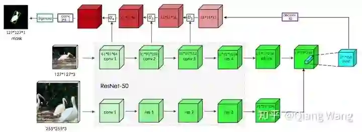 当有了上述的motivation之后,具体实现非常简单,只需要在siamese网络架构中额外增加一个Mask分支即可。