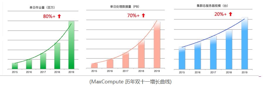 随着业务和数据的持续高速增长,MaxCompute 双十一的作业量和计算数据量每年的增速都保持在60%以上 。
