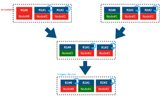如上图所示,DAG2将机器分为多个状态。并根据一系列不同的指标来触发在不同状态之间的转换。对于不同状态的机器,根据其健康程度,进行主动规避,计算任务迁移,以及计算任务主动重跑等操作。将机器问题造成的作业运行时间拉长,甚至作业失败的可能性降到最低。