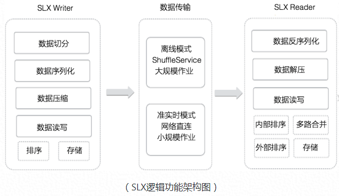 SLX逻辑功能架构如图所示,主要包含了SQL runtime层面的数据处理逻辑重构优化,包括优化数据处理模式,算法性能提升,内存分配管理优化,挖掘硬件性能等各方面来提升计算性能,而且底座结合了全新设计的负责数据传输的Fuxi ShuffleService服务来优化IO读写以及Worker容错性等方面,让SLX在各种数据模式以及数据规模下都能够有很好的性能提升和高效稳定的运行。