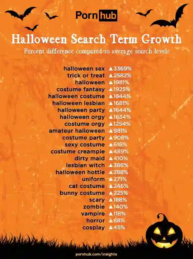 图|万圣节期间,用户以万圣节相关的关键字搜寻影片的比例大大提高了。(图片来源:Pornhub Insights)
