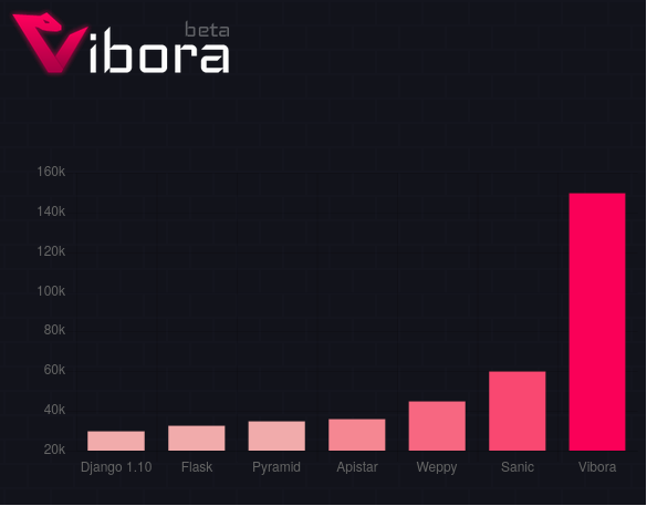 Vibora声称在吞吐量上要比Flask高500%。但是,当我查看他们的基准代码时,发现他们误将Flask配置为每个CPU只使用一个工作进程。更正后,我得到了以下结果: