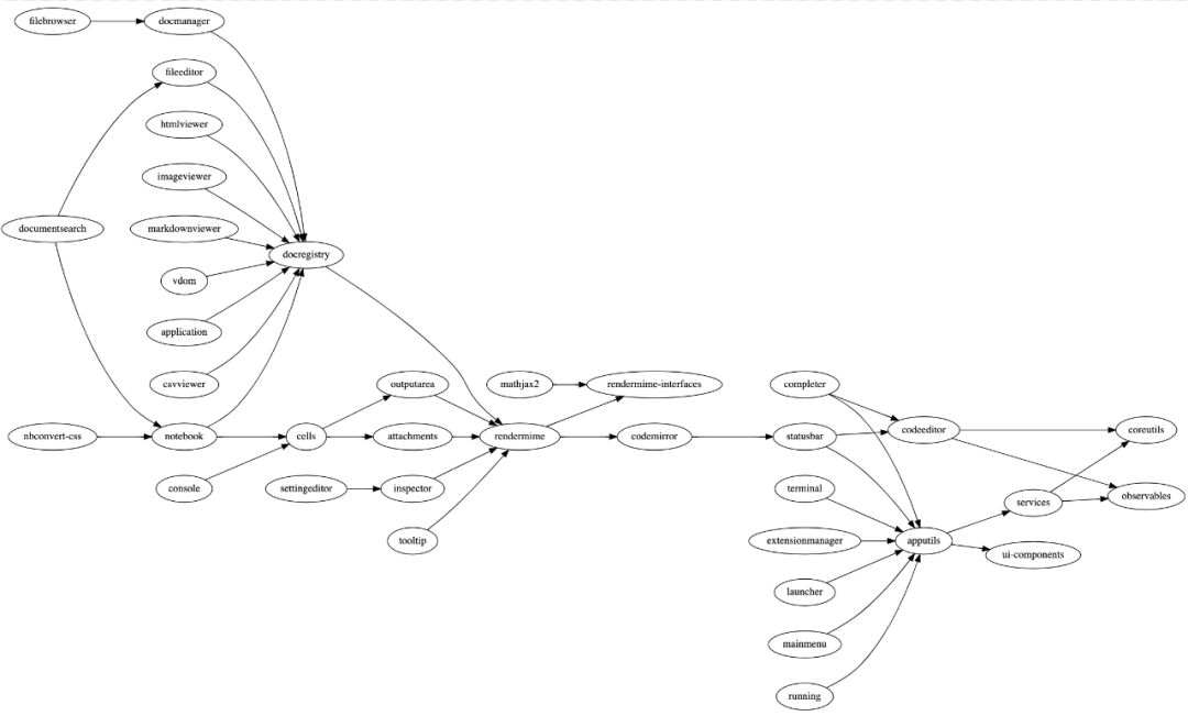 JupyterLab是Jupyter全新的前端项目,这个项目有非常明确的扩展规范以及丰富的扩展方式。通过开发JupyterLab扩展,可以为前端界面增加新功能,例如新的文件类型打开/编辑支持、Notebook工具栏增加新的按钮、菜单栏增加新的菜单项等等。JupyterLab上的前端模块具有非常清楚的定义和文档,每个模块都可以通过插件获取,进行方法调用,获取必要的信息以及执行必要的动作。我们在提供分享功能、调度功能时,均开发了JupyterLab扩展。JupyterLab扩展通常采用TypeScript开发,开发文档可参考: