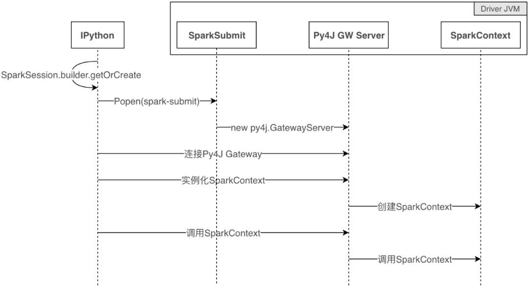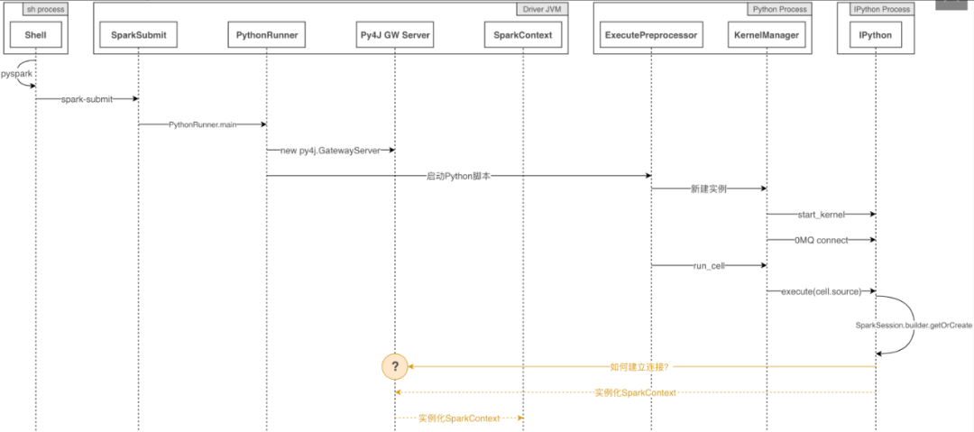 问题1从原理上看,是可以正常执行的。实际测试也是如此。对于问题2,答案似乎并不明显。结合“PySpark启动时序图”、“实际的IPython中启动Spark时序图”与“nbconvert执行时序图”: