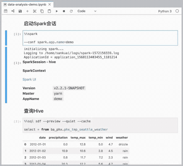 接入Spark:取数与分析均在Jupyter中完成,达到流畅、一致的体验。