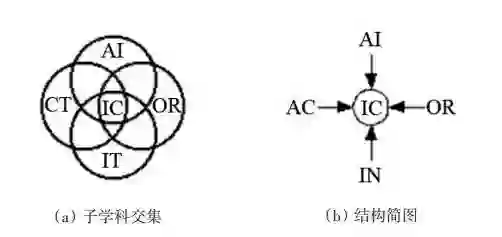 智能控制的学科结构理论体系是智能控制基础研究的一个重要课题。自1971年傅京孙提出把智能控制作为人工智能和自动控制的(二元)交接领域之后,萨里迪斯和蔡自兴分别提出三元交集结构和四元交集结构。这些智能控制学科结构思想,有助于对智能控制的进一步深刻认识。蔡自兴于 1987年提出的四元智能控制结构(图1),认为智能控制是自动控制(AC或CT)、人工智能(AI)、信息论(IT或 IN)和运筹学(OR)四个子学科的交集。智能控制四元交集结构理论成果,已被收入了《中国大百科全书》。