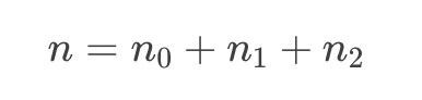 设任意一棵二叉树的叶子结点数为 n0 ,度为 1 的结点数为 n1,度为 2 的结点数为 n2;总结点数为 n。则有: