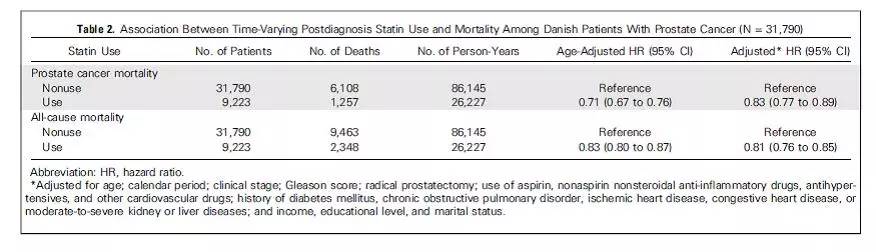 诊断后他汀使用与前列腺癌死亡风险的降低相关,然而该相关性是否是因果关系仍需确定。将来的研究需要确定,他汀在PC管理中是否具有真正的治疗潜力。
