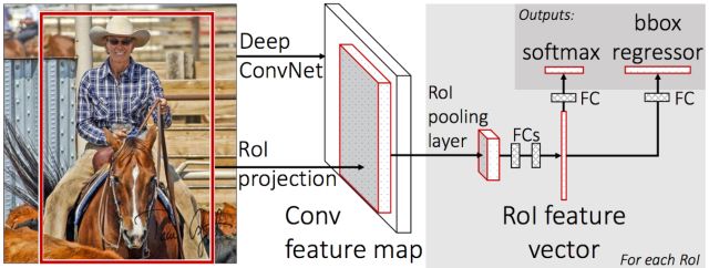 此后MSRA的Kaiming He等人在R-CNN的基础上提出了SPPNet,该方法虽然还依赖候选框的生成,但将提取候选框特征向量的操作转移到卷积后的特征图上进行,将R-CNN中的多次卷积变为一次卷积,大大降低了计算量(这一点参考了OverFeat)。