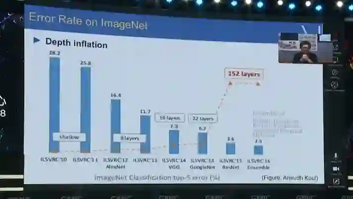 随着网络深度的不断增加,识别 ImageNet 图像的错误率也在不断下降,现在已经表现得比人还要好。在 ImageNet 上的表现已经太好了,以至我们现在都已经不再把它作为首选的评价标准了 。我们现在也在研究更复杂的问题,不只是识别图像,还要能够进行本地化处理。
