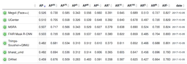 最后我们来看通用目标检测算法的最新进展。下图是MSCOCO 2017年目标检测竞赛的领先算法: