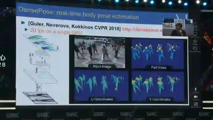 当然还包括其他很多项目,在 Facebook,我们利用这样的技术设计了 DensePose,它在一个单一的 GPU 上运行,可以预测密集人体姿态估计,而且系统能够实时运行。这个系统可以追踪很多人的行为,生成视频,而且对姿势的判断也非常准确。此外,它可以实时地生成分片 3D 模型,相应的代码也是开源的。
