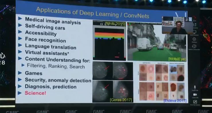 我刚才讲到,Facebook 每天都会有一些新的应用发布,比如医学影像分析、自动驾驶、语言翻译等等,在科学方面也有很多应用,我们也可以看到,深度学习的广泛应用会进一步推动科学方面的研究,在接下来几年里,我们会看到深度学习会发生更大的变革。