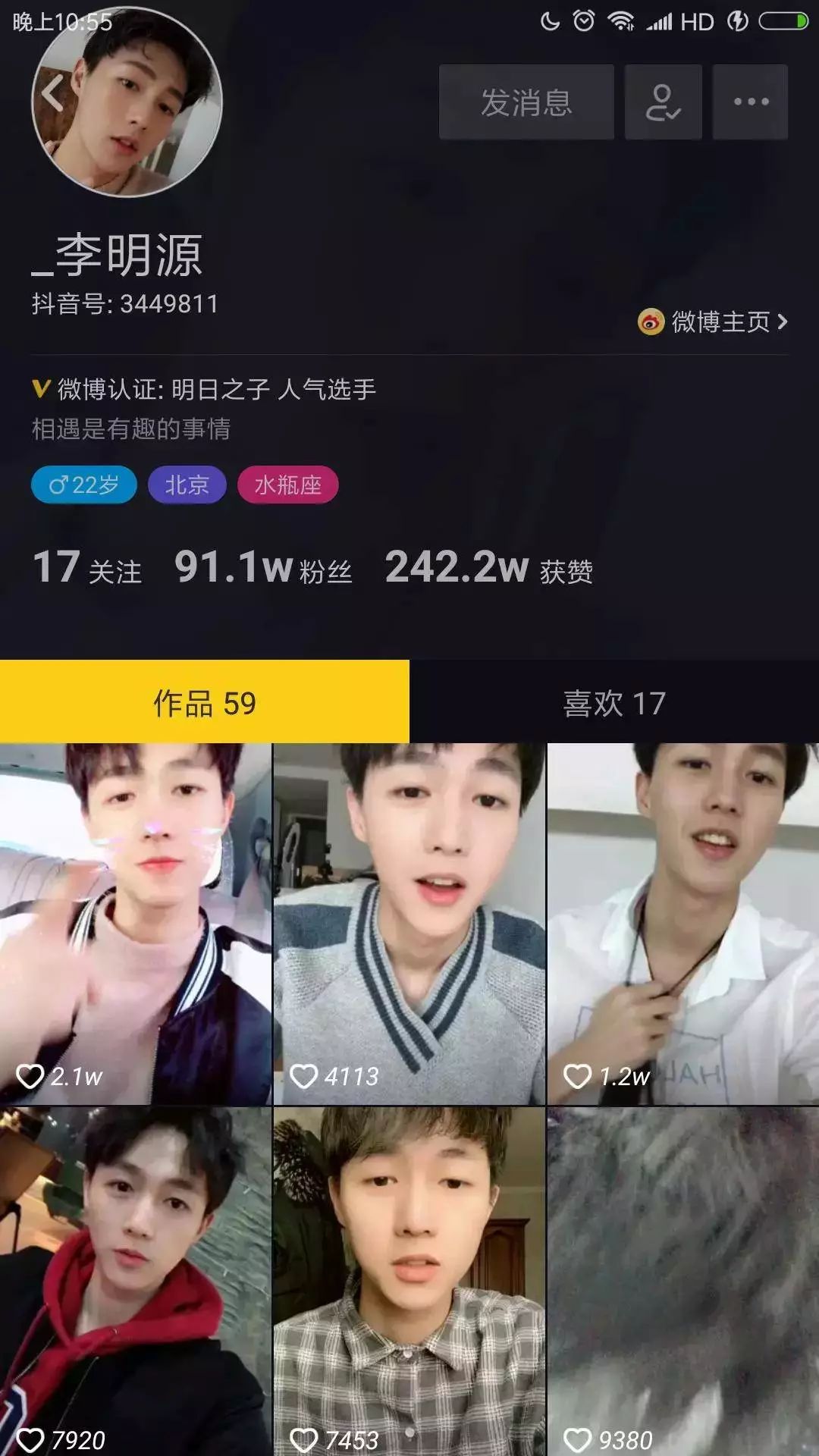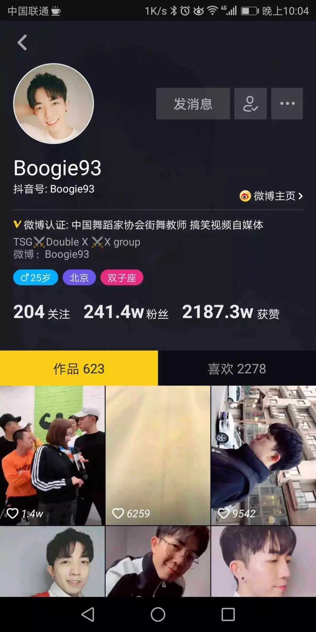 他是Boogie93,是抖音上最早一批用户之一,也是一位拥有240多万粉丝的红人。在一年左右的时间内,他在抖音上创作了622件作品,收获2185万个点赞。