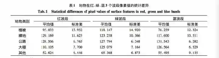 R、G、B 分别表示红波段、绿波段和蓝波段像素值,r、g、b 分别表示归一化后相应波段像素值。