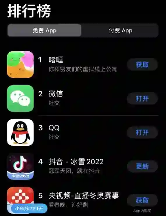 【元宇宙社交App登顶AppStore】元宇宙社交概念应用软件“啫喱”超过微信、QQ,登上AppStore第一。啫喱App在应用商店的描述为只属于自己和最好朋友的友情公寓。目前共有主页、信息流、发布、消息和个人主页等5个一级菜单,以捏脸换装、发布即时动态和社交聊天等为主要功能。(凤凰网科技)