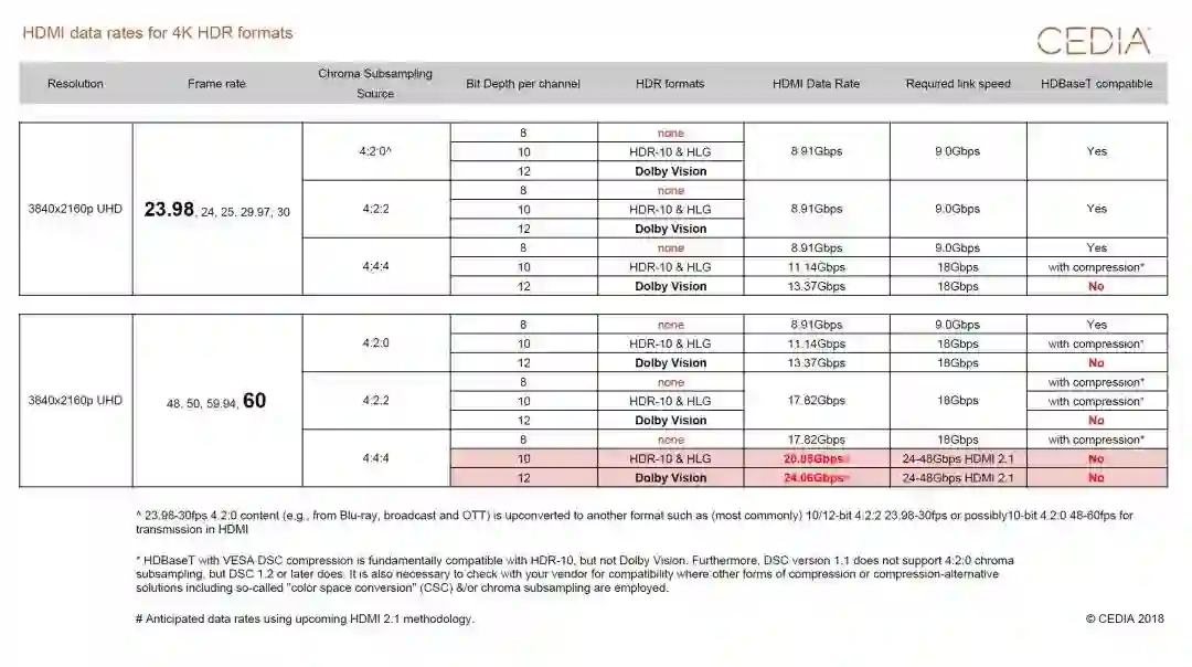 上面这个表格是不同传输协议下的带宽要求,这个传输带宽其实是通过像素量*色深*3*帧数*采样压缩率进行计算,如果将 4K/60 帧/8bit 的视频信号代入公式,12Gbps 是最低的传输速率(采样压缩为 1),并且这还不包括音频所需带宽。而 5G WIFI 的最高传输速率为 1Gbps,要实现高画面质量传输也就意味着要提高采样压缩率,减少画质协议或者降低色深数。如果想要提高画质,也就意味着需要更加强大的压缩解码芯片,也就意味着更高的成本。