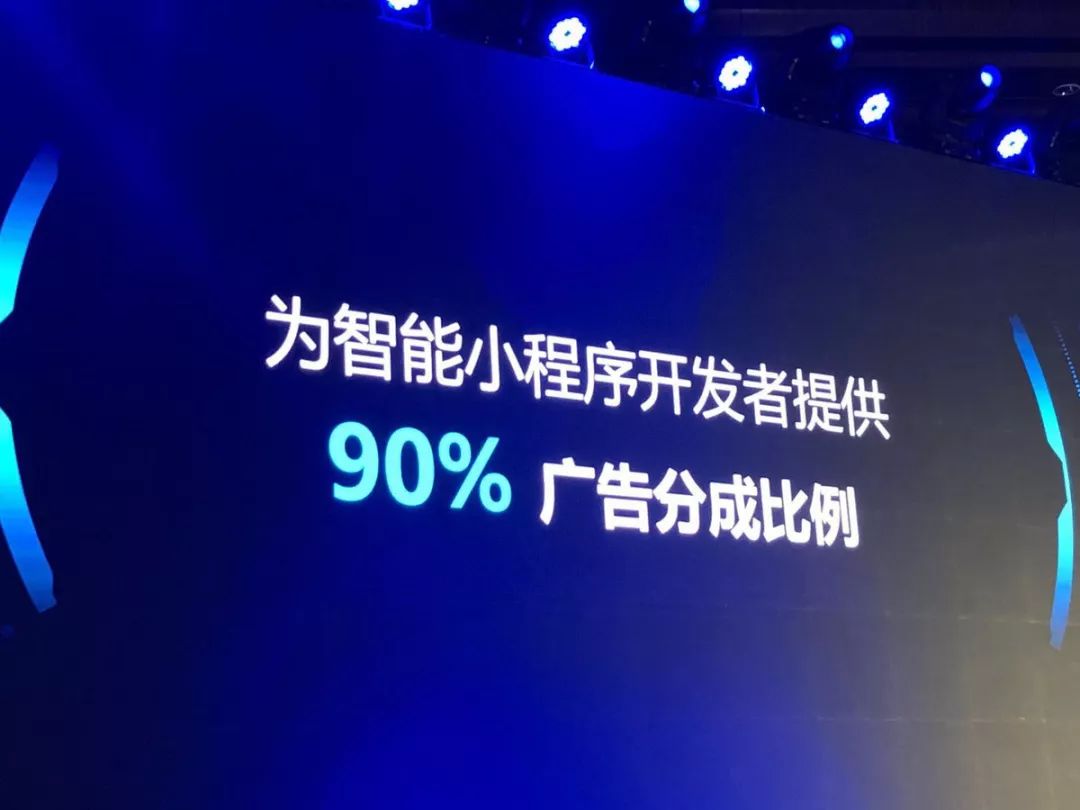 为了追赶微信,百度智能小程序正拿出更激进的策略——对愿意接入百度广告组件的小程序给出90%的分成。“这是个有诚意的数字,微信小程序广告分成的比例是50%至70%,百度的比例高,不过还要看广告主是否愿意投小程序广告。”一位开发者对36氪评价。