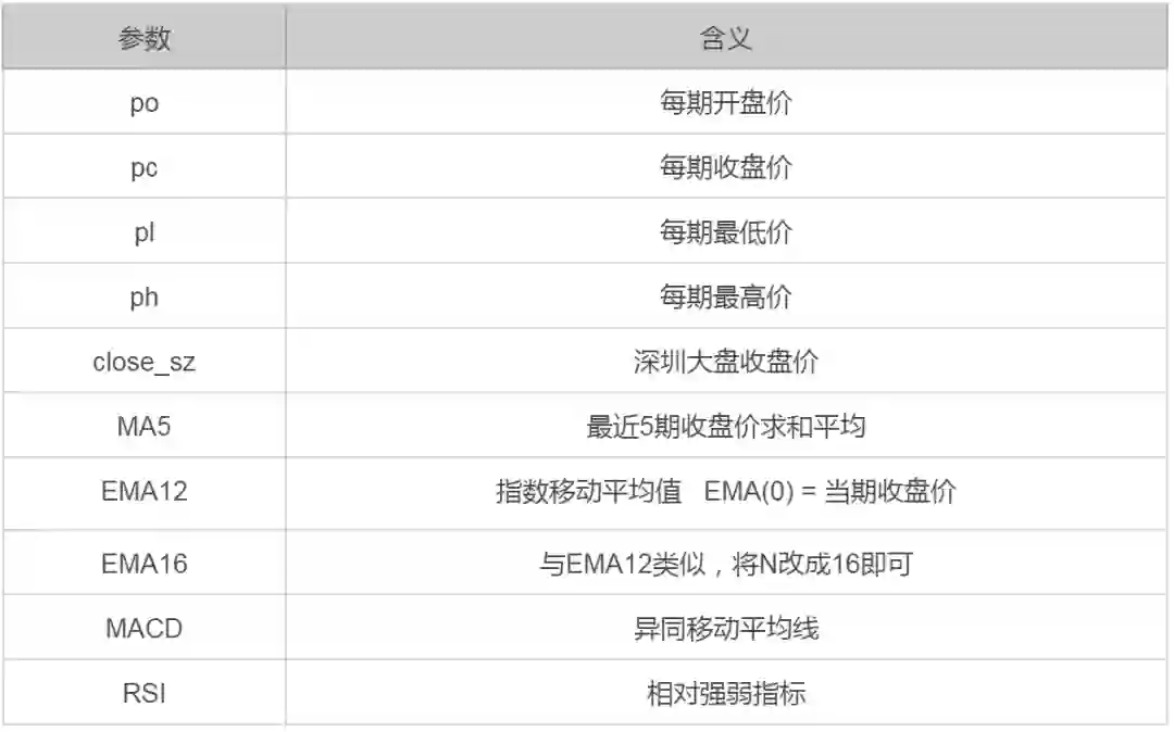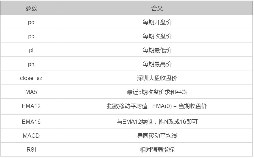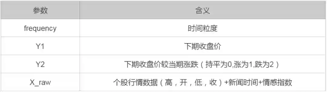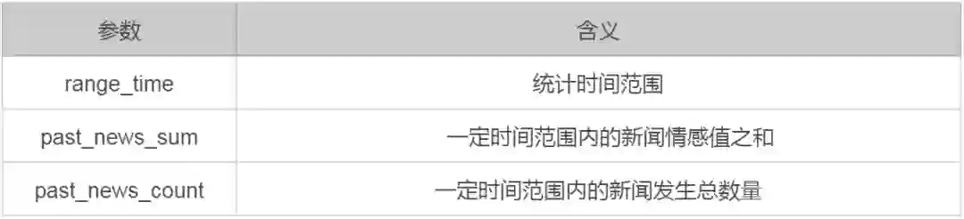 通过构造不同的特征值,我们对行情和舆情数据进行多因子模型的特征提取,如表 4 中的情感衍生特征和表 5 中的价格衍生特征: