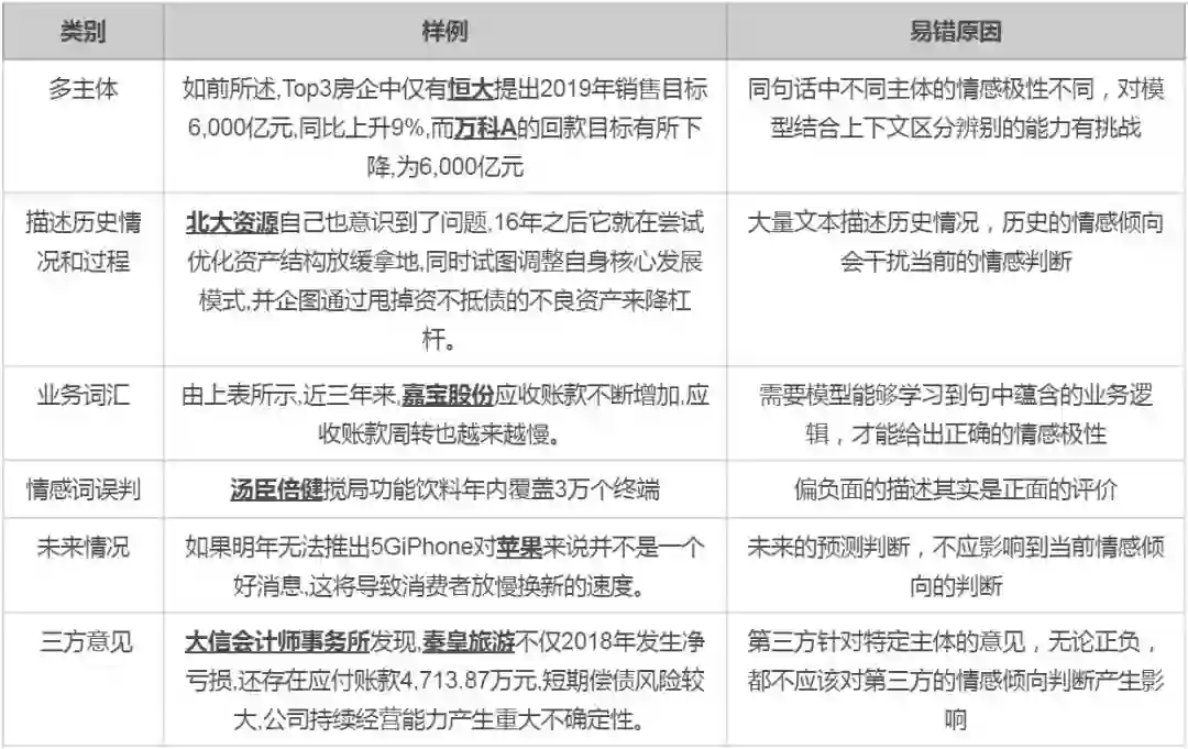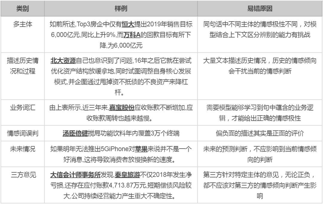 词语标注主要关注情感词(上涨、下跌等)、否定词(未能,暂未等)、程度词(大幅,明显等)和转折词(但是,然而等);词组标注主要关注双重否定(亏损减少)和前后转折(速度快但不稳定)。