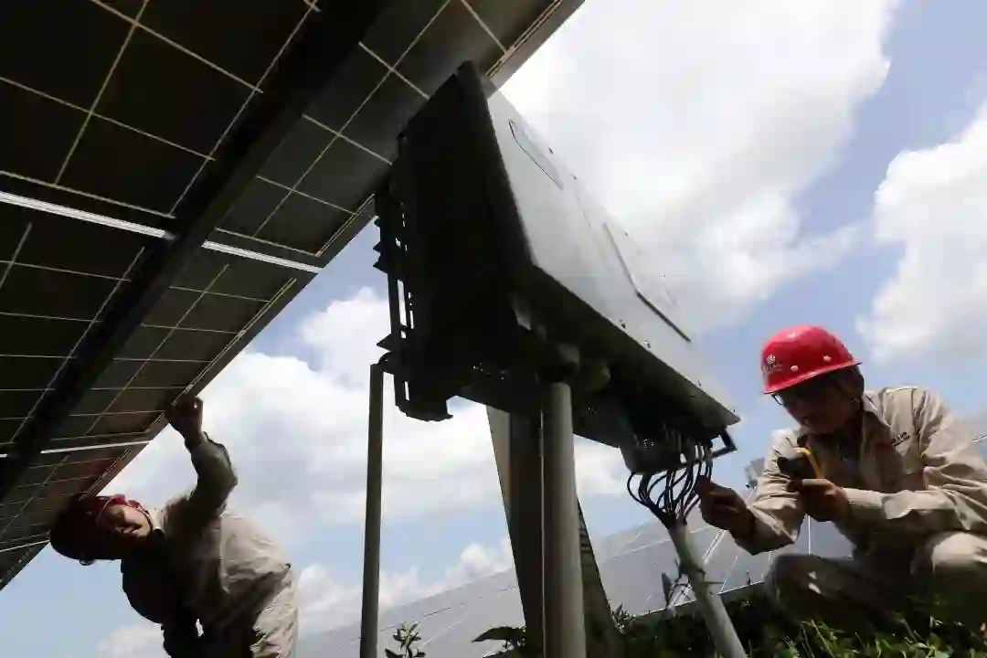 工人在勘察光伏逆变器的运行情况。图片来源:视觉中国
