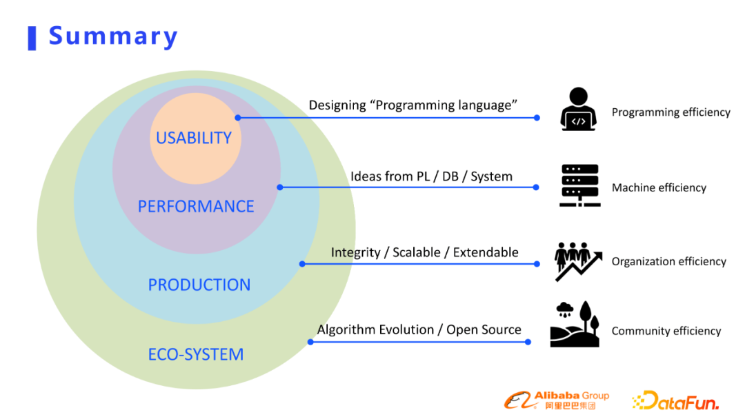 最后是生态层面,也就是要考虑算法的演化路径以及未来几年整个算法的趋势。框架是否能让算法不断尝试新想法,优化社区的整体效率。