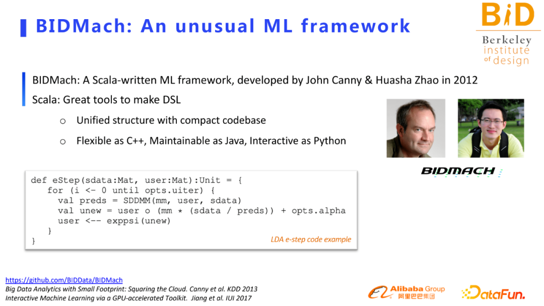 BIDMach是2012年在伯克利BID实验室研发的一个开源机器学习框架。