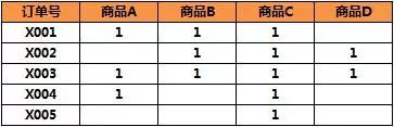 假设某电商会售卖ABCD四种商品,历史上共5笔订单,分别卖出{A,B,C}, {B,C,D}, {A,B,C,D}, {A,C}, {C} 如何来实施“关联规则”推荐呢?