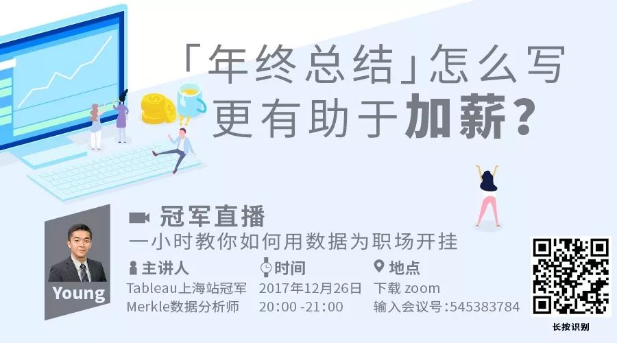 开课前夕,Udacity 特邀 Tableau 上海站冠军 Young 为大家带来干货满满的专属直播,用短短一小时,带你了解python,教你如何掌握数据可视化的思维和小技巧,让你的年终总结从加薪阻碍变为加薪利器,让你的图表会说话!