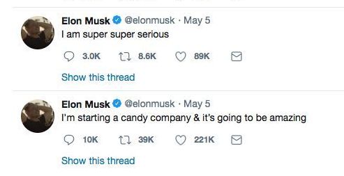 马斯克随后发推文称:“我将开设糖果生产公司,会非常惊人。”马斯克补充说,他的计划“超级认真”,并提议打造“加密糖果”。