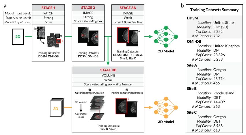 乳腺癌仍然是全球性挑战,2018年在全球造成超过100万人死亡。为实现早期乳腺癌检测,全球卫生组织推荐行X线钼靶筛查(乳腺癌筛查的“金标准”),据估计可将乳腺癌死亡率降低20-40%。然而,显著的假阳性和假阴性率,以及高昂的解读成本,使得临床仍需要质量更高、可及性更高的筛查手段。为了解决临床实践中存在的这些局限与不足,近年来研究者们对“将深度学习应用于钼靶”产生了浓厚的兴趣。但是,获取大量带标注的数据给训练深度学习模型,以及确保训练数据集中代表人群的泛化提出了挑战。