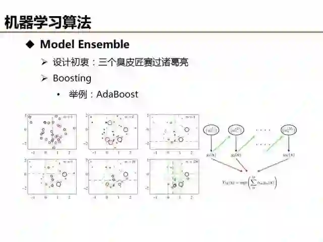 Boosting为Model Ensemble 的另外一种方法,其思想为模型每次迭代时通过调整错误样本的损失权重提升对数据样本整体的处理精度,典型算法包括 AdaBoost 、GBDT 等。