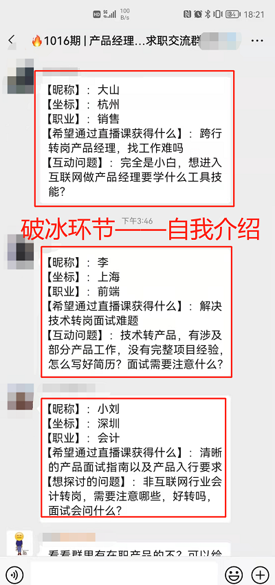 一个人学习枯燥无味?一群人学习动力满满!此次公开课,我们设置了专属的学习交流社群,你将结识各行各业优秀的准产品经理,在群内进行随时提问或直接参与话题讨论。