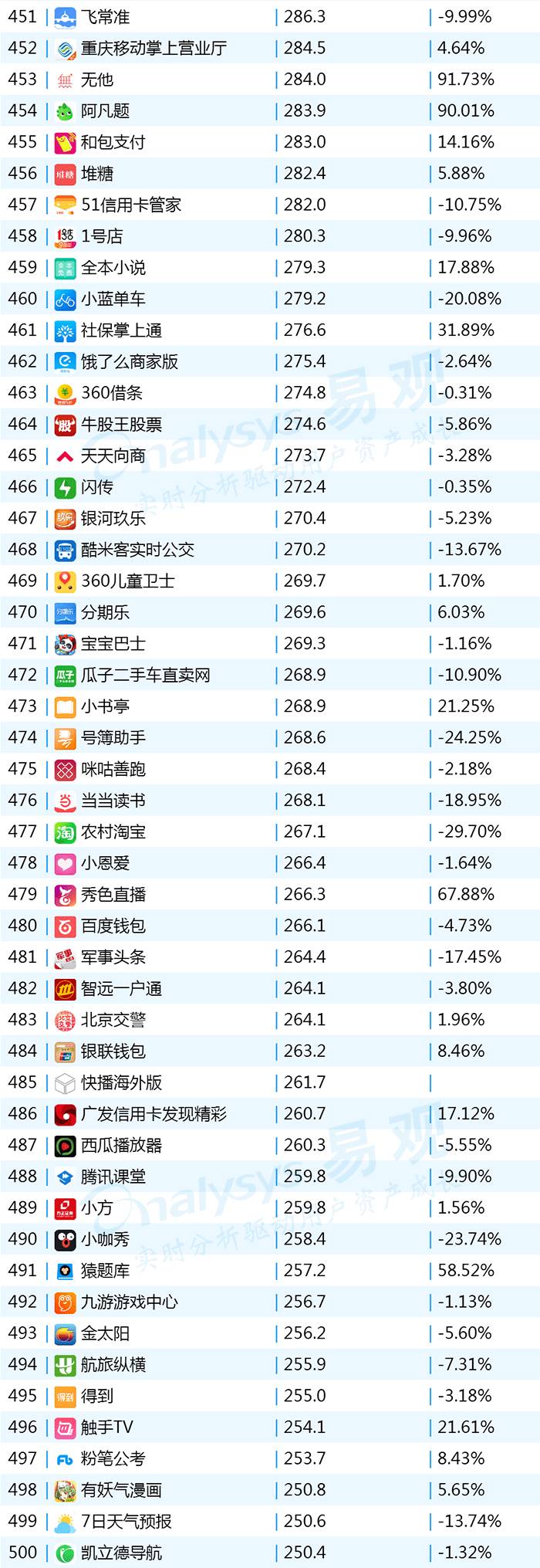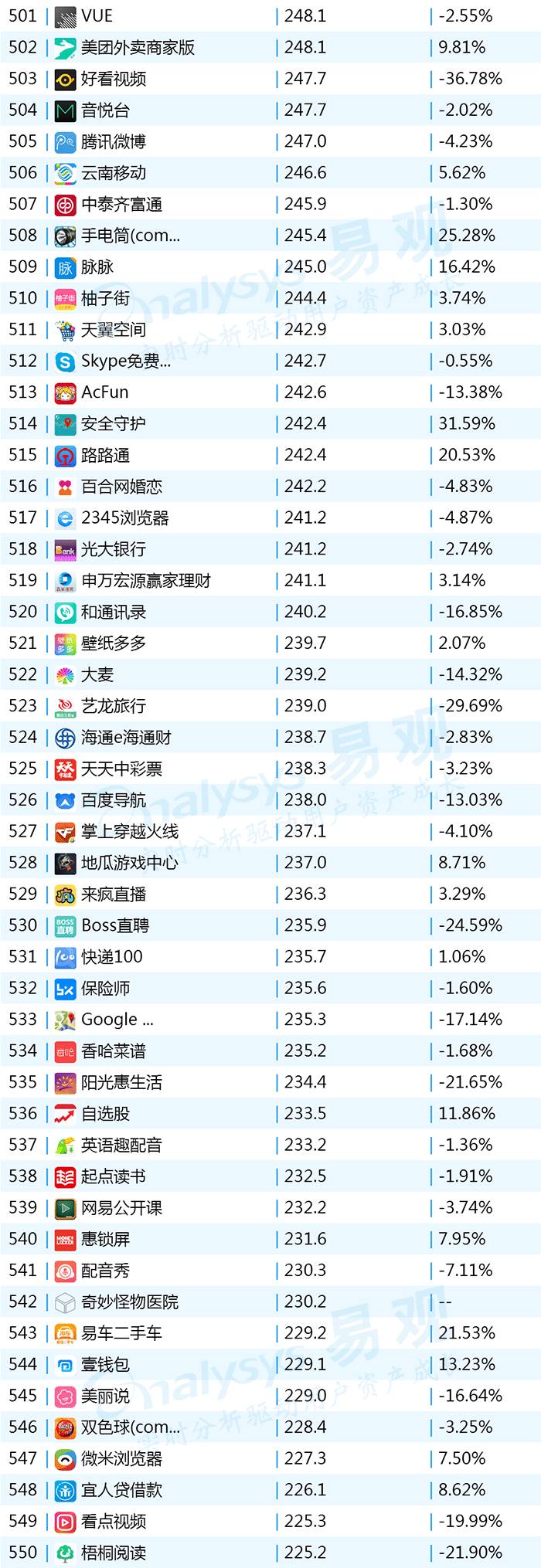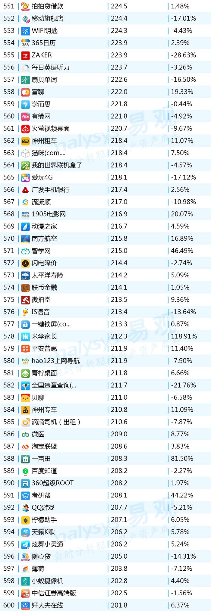 2017年9月App TOP1000 501-600