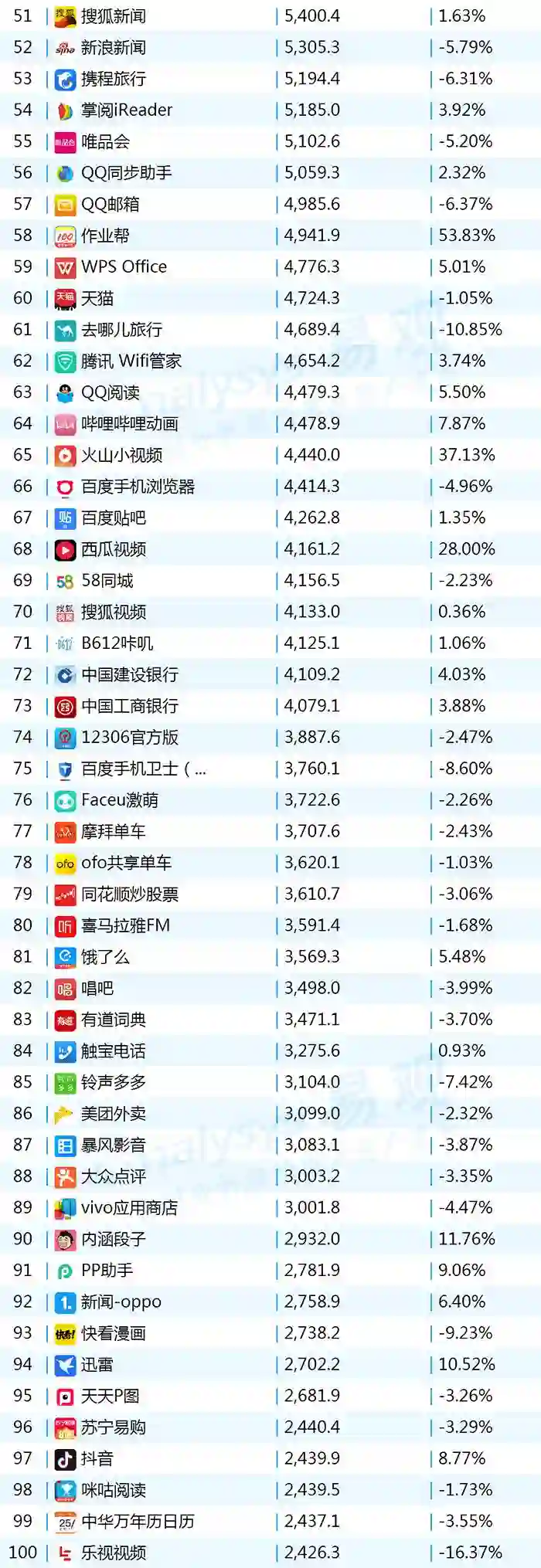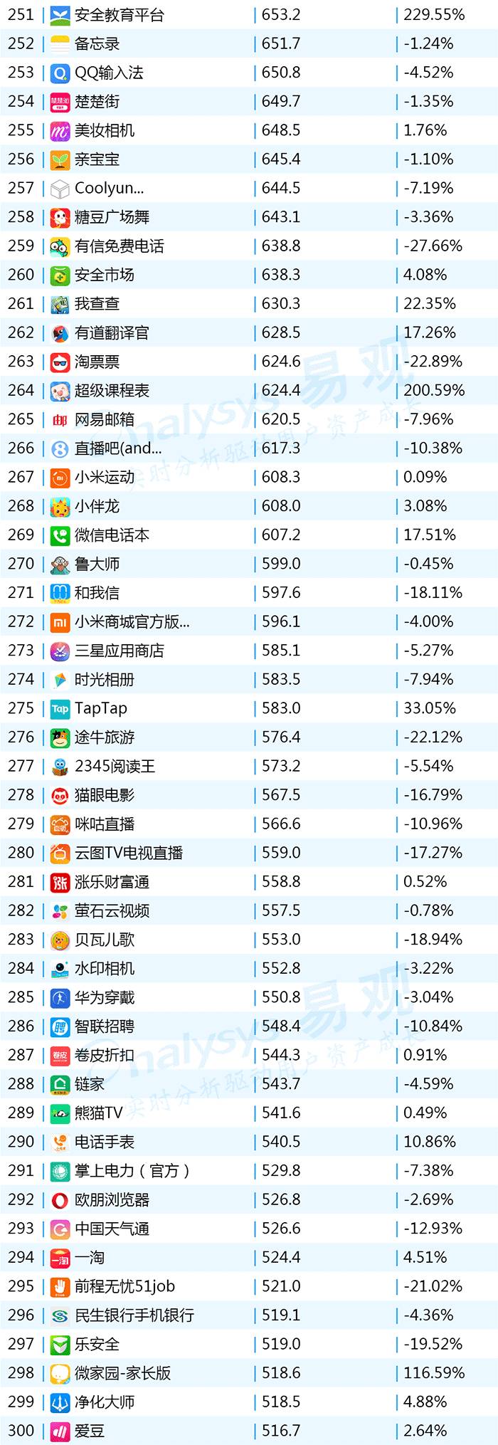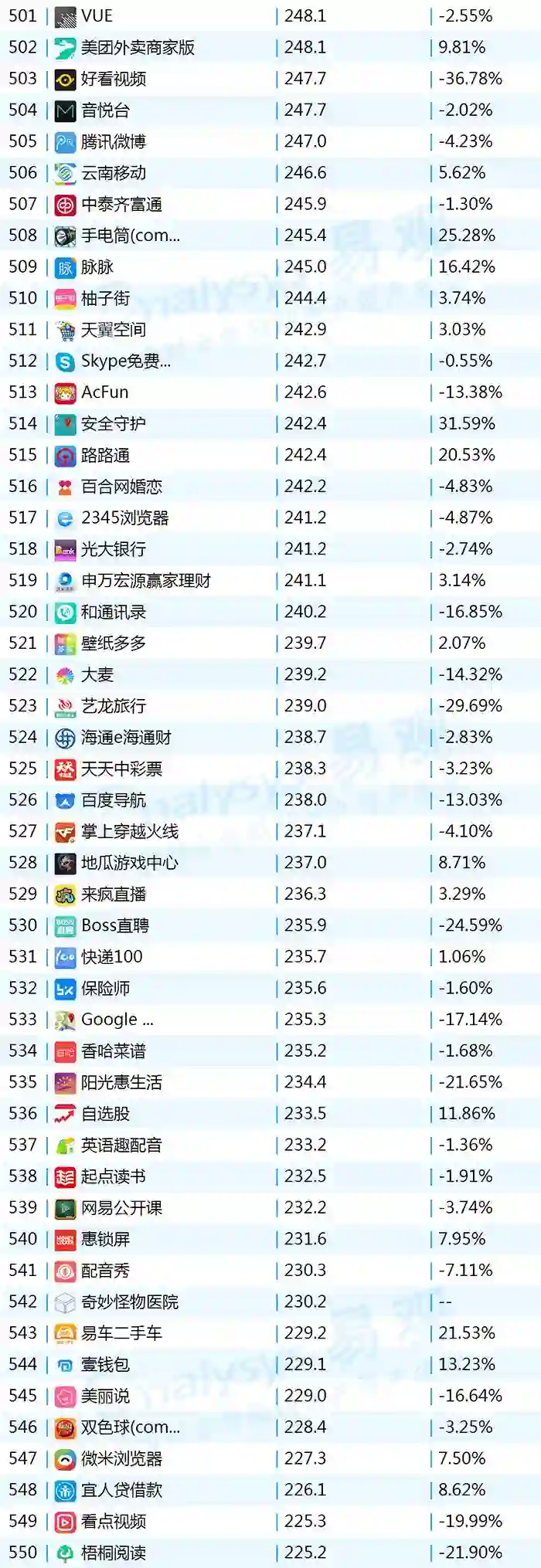 2017年9月App TOP1000 501-600