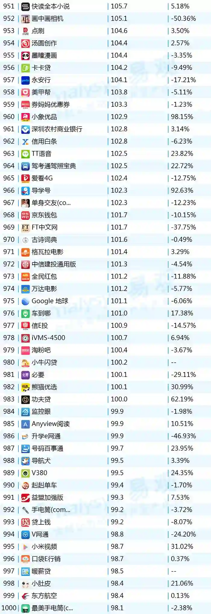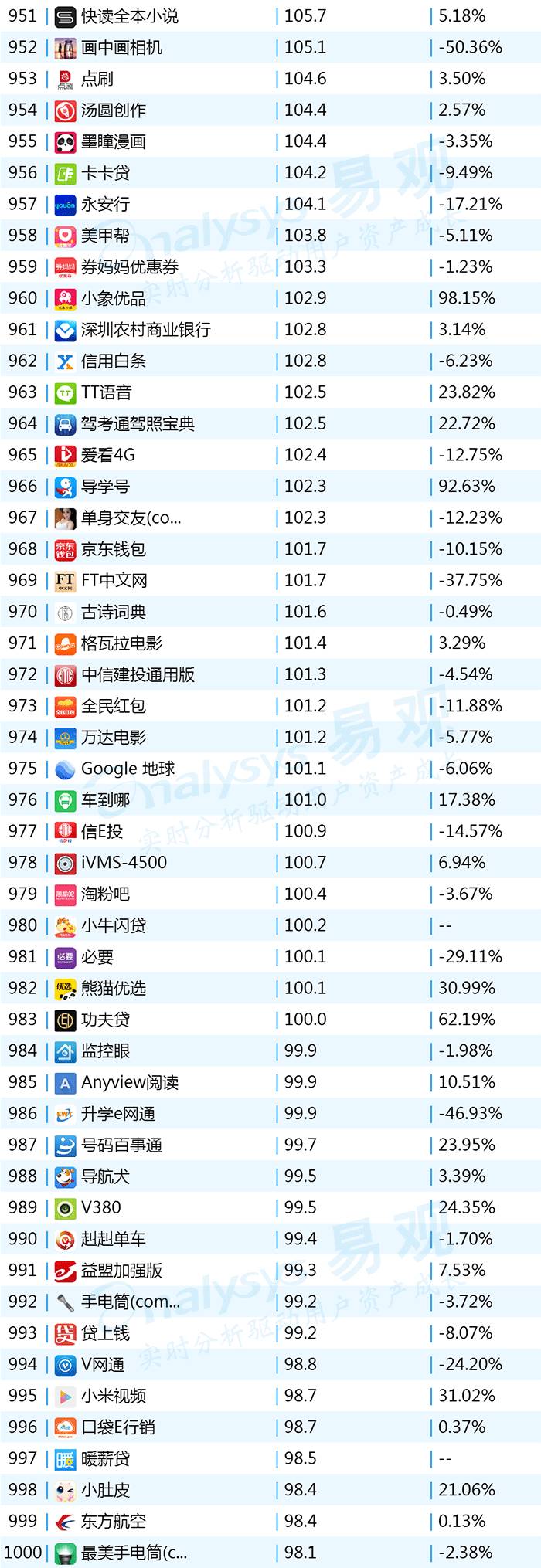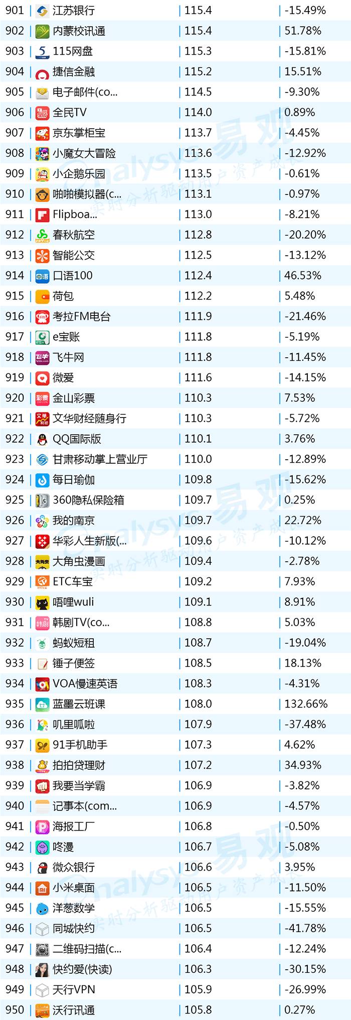 2017年9月App TOP1000 901-1000
